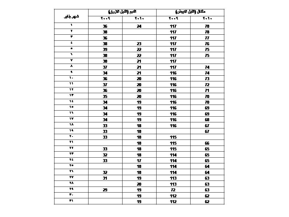 مقارنة تدفقات النيل الأبيض والأزرق 2009-2010