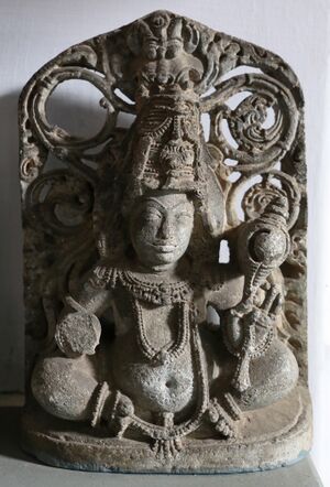 Although the Hindu mythological texts do not mention any such form of Durga, the worship of a goddess named Kakati is attested by several other sources. For example, Vallabharaya's Krida-bhiramamu mentions an image of Kakatamma ("Mother Kakati") in the Kakatiya capital Orugallu. The 16th century Shitap Khan inscription mentions the reinstallation of the image of goddess Jaganmatruka (mother of the universe) and the lotus seat of the Kakatirajya, which had been destroyed by the Turushkas (Turkic people).[17] According to one theory, Kakati was originally a Jain goddess (possibly Padmavati) and later came to be regarded as a form of Durga.[14]