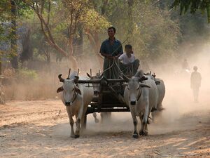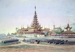 The cultural heartland of the Bamar is called Anya (အညာ, حرفياً 'upstream', also spelt Anyar), which is the area adjoining the upper reaches of the Irrawaddy River, and centred around Sagaing, Magwe, and Mandalay.[8][41][42] The Anya region (အညာဒေသ) is often called the 'central dry zone' in English due to its paucity of rainfall and reliance on water irrigation.[42] For 1,100 years, this region was home to a series of Burmese royal capitals, until the British annexed Upper Burma (the last remaining part of the Konbaung Kingdom) in 1885.[8] Bamar from this region are called anyar thar (အညာသား) in Burmese.[43]