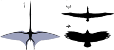 إعادة بناءٍ لأجنحة الكويتزاكوتلس تقارنها بأجنحة القطرس الجوال وكندور الأنديز (مقاييس الأحجام ليست حقيقية).