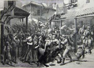 The conflict rapidly spread and came to involve several Balkan states and Great Powers, which eventually forced the Ottomans to cede administration of the country to Austria-Hungary through the Treaty of Berlin (1878).[134] After the uprising in Herzegovina (1875–78) the population of Bosnian Muslims and Orthodox Christians in Bosnia decreased. The Orthodox Christian population (534,000 in 1870) decreased by 7 percent while Muslims decreased by a third.[135] The Austrian census in 1879 recorded altogether 449,000 Muslims, 496,485 Orthodox Christians and 209,391 Catholics in Bosnia and Herzegovina. The losses were 245,000 Muslims and 37,500 Orthodox Christians.[135]
