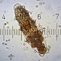 قشرة متساقطة من أنثى بطيء الخطو تحتوي على مجموعة من البويضات.