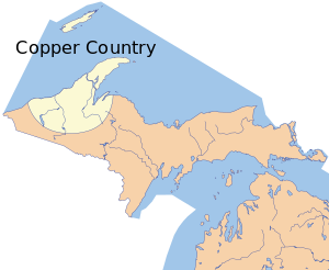 بلد النحاس Copper Country هي منطقة في شبه الجزيرة العليا لمشيگن في الولايات المتحدة, including Keweenaw County, Michigan, Houghton, Baraga and Ontonagon counties as well as part of Marquette County. The area is so named as copper mining was prevalent there from 1845 until the late 1960s, with one mine (the White Pine mine) continuing through 1995. In its heyday in the latter half of the 19th century and the early 20th century, the area was the world's greatest producer of copper.[1]