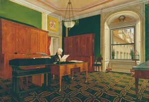 The effect was for artists and society in general to concentrate on the domestic and, at least in public, the non-political. Writers, painters, and musicians began to stay in safer territory, and the emphasis on home life for the growing middle class meant a blossoming of furniture design and interior decorating.[3]