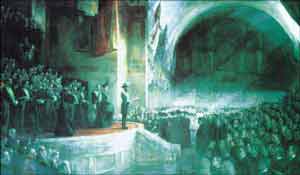 Sir Henry Parkes delivering the first resolution at the federation conference in Melbourne, 1 March 1890