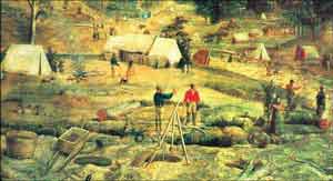 معسكرات التعدين مثل هذا المعسكر في باتهيرست (عام 1851م) قد انتشرت بعد اكتشاف الذهب في عام 1851م وكثر عدد المعدِّنين الذين ذهبوا إلى أستراليا من مختلف الأقطار.