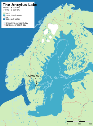The last ice age in the area of the modern-day Finland ended c. 9000 BC. Starting about that time, people migrated to the area of Finland from the south and southeast. Their culture represented a mixture of Kunda, Butovo, and Veretje cultures. At the same time, northern Finland was inhabited via the coast of Norway.[9] The oldest confirmed evidence of post-glacial human settlements in Finland is from the area of Ristola in Lahti and from Orimattila, from c. 8900 BC. Finland has been continuously inhabited at least since the end of the last ice age up to the present.[10] The earliest post-glacial inhabitants of the present-day area of Finland were probably mainly seasonal hunter-gatherers. Among finds is the net of Antrea, the oldest fishing net known ever to have been excavated (calibrated carbon dating: ca. 8300 BC).