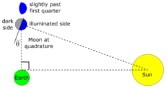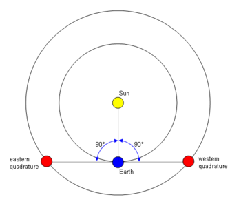 وكما يظهر في المخطط أعلاه، فإن كوكب (أو أي جرم آخر) يمكنه أن يكون في التربيع الغربي (حين يكون إلى الغرب من الشمس، للناظر من الأرض) أو في التربيع الشرقي (حين يكون إلى الشرق من الشمس، للناظر من الأرض). لاحظ أن كوكباً سفلياً يستحيل أن يكون في تربيع بالنسبة لكوكب علوي.