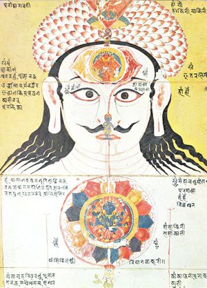 الشاكرات, مراكز الطاقة السبعة للجسد, توصف أحيانا بأصوات معينة, وألوان يفترض أنها ترافق كل شاكرا, هي مراكز طاقة حيوية حيث تفيض الطاقة الروحانية إلى الجسد. تتمركز مع خط العمود الفقري. كل مركز طاقة يحتوي معلومات متعلقة بجوانب مختلفة للوجود. أنظر وصف مفصل للفعاليات الفريدة والإنسدادت للشاكرات السبعة.