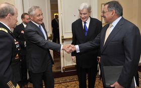 أدى هيگل قسم المنصب في 27 فبراير 2013. ليخلف وزير الدفاع السابق ليون پانـِتـّا.