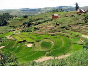 Globally one of the largest contributors to erosive soil loss in the year 2006 is the slash and burn treatment of tropical forests. In a number of regions of the earth, entire sectors of a country have been rendered unproductive. For example, on the Madagascar high central plateau, comprising approximately ten percent of that country's land area, virtually the entire landscape is sterile of vegetation, with gully erosive furrows typically in excess of 50 متر (160 ft) deep and 1 كيلومتر (0.6 ميل) wide. Shifting cultivation is a farming system which sometimes incorporates the slash and burn method in some regions of the world. This degrades the soil and causes the soil to become less and less fertile.[54]