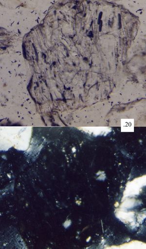 حبة الرمل، في الصورة، المكونة من زجاج بركاني هي أحادية الخواص isotropic، ولذلك فإنها تختفي حين ننظر إليها من خلال مجهر پتروگرافي مزدوج الاستقطاب.
