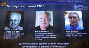 13. ^ أ ب Broad, William J. (2015-10-07). "Nobel Prize in Chemistry Awarded to Tomas Lindahl, Paul Modrich and Aziz Sancar for DNA Studies". The New York Times. ISSN 0362-4331. Retrieved 2015-10-07.