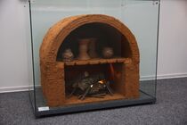 In the late period of Cucuteni–Trypillia culture, kilns with a controlled atmosphere were used for pottery production. These kilns were constructed with two separate chambers—the combustion chamber and the filling chamber— separated by a grate. Temperatures in the combustion chamber could reach 1000–1100 °C but were usually maintained at around 900 °C to achieve a uniform and complete firing of vessels.[66]