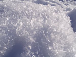 الثلج Snow شكل ترسيبي يتكون من كتل من بلورات جليدية صغيرة. تنمو هذه البلورات معًا من بخار الماء في السحب الباردة. لتكون الندف الثلجية عند اصطدامها وتماسك بعضها ببعض.