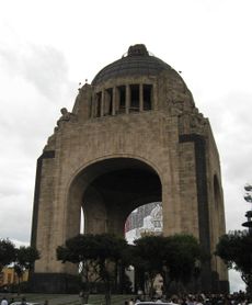 Monument to the Revolution located due west of the center of Mexico City