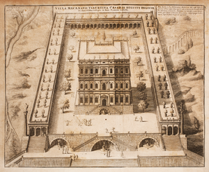 The gardens became imperial property after Maecenas's death, and Tiberius lived there after his return to Rome in 2 AD.[20] Nero connected them with the Palatine Hill via his Domus Transitoria,[21] and viewed the burning of that from the turris Maecenatiana.[22] This turris was probably the "molem propinquam nubibus arduis" ("the pile, among the clouds") mentioned by Horace.[23]