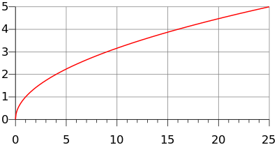 - تابع الجذر التربيعي ذو الشكل f(x) = √x هو تابع يربط مجموعة الأعداد الحقيقية الموجبة R+ ∪ 0 بنفسها، ومثله مثل جميع التوابع الأخرى فإنه ينتج دائماً قيمة فريدة.