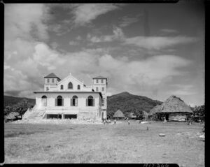 1832 – John Williams (Ioane Viliamu as he is known to Samoans) landed at Leone Bay in what was later to become American Samoa. (Tala faasolopito o le Ekalesia Samoa) He was informed that men of their village have accepted the 'lotu' brought by Ioane Viliamu in Savai'i; not knowing John Williams now stood before them. A monument stands before the large Siona Chapel – now CCCAS in Leone, American Samoa – in honor of John Williams.