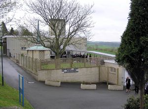 The crematorium at Haycombe Cemetery, Bath, إنگلترة. A cremation service has just finished.