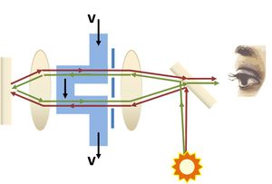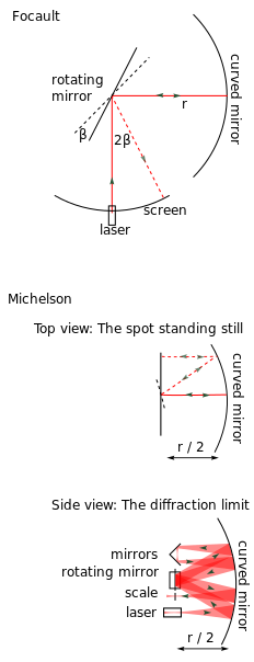 جهاز فيزو-فوكو Fizeau–Foucault apparatus، (1850) (شكل 1) صممه الفيزيائي الفرنسي هيپوليت فيزو وليون فوكو لقياس سرعة الضوء.[1]