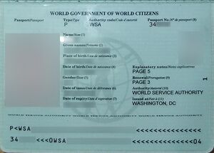 - ^ "WSA Passport Acceptance - Visas on WSA Passports". www.worldservice.org. World Government of World Citizens. Archived from the original on 1 December 2014. Retrieved 4 December 2014.
