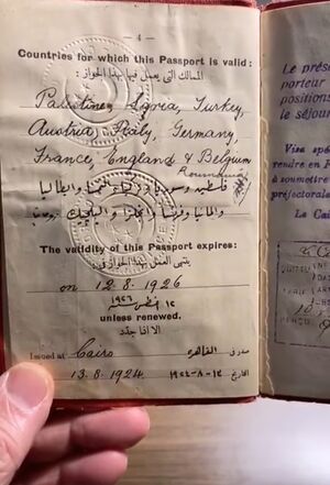 جواز سفر مواطن مصري عام 1924 الدول التي يدخلها دون تأشيرة هي ألمانيا وفرنسا وبريطانيا وإيطاليا وبلجيكا وتركيا وفلسطين وسوريا وكتب عليه: "نرجو من كل من له اختصاص أن يسمحوا لحامل هذا بحرية المرور من غير توان مع تذليل كل صعوبة في سبيله وأن يبذلوا له كل ما يحتاج إليه من مساعدة"