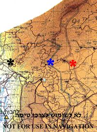 Borders between Israel, Syria and Lebanon in Mount Hermon region. The (+++) Line between Israel and Lebanon – marked by black asterisk. Disengagement Israeli front line with Syria (1974) – marked by blue asterisk. Disengagement Syrian front line with Israel (1974) – marked by red asterisk.