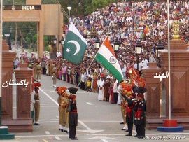 The Wagah border crossing between الهند and Pakistan along the Radcliffe Line.