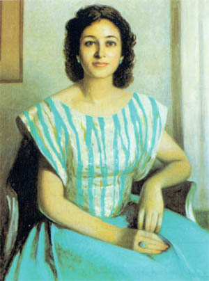 هو واحد من أمراء هذا الفن .. اتسمت خطوطه بالانسيابية وتكويناته بالإحكام كان يضفى على البورترية شيئا من سكينة روحه .. ووداعتها لهذا كان أغلبها حالما .. رقيقا .. معتمدا أيضا على ملامح المرسوم .. فنساؤه وديعات .. يغلف وجودهن سموا وإباء وقد قال لى منذ شهور إنه إن لم يحب ملامح من سيرسم فلن تطاوعه فرشاته .. ولهذا فإن معظم بورتريهاته تحمل الكثير من مصالحته مع الحياة .. كما كان يهتم أيضا بالتفاصيل في الملابس والإكسسوار ووضع الشخصية جلوسا أو وقوفا وزاوية الرسم .. وقد برع في إعطاء الضوء وإظهاره . معتمدا على مصدر واحد للضوء في غالبه من جانب يقترب من مواجهة اللوحة .