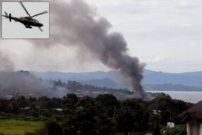 A building in Marawi is set ablaze by airstrikes carried out by the Philippine Air Force and the Naval Air Wing of the Philippine Navy | |||||||||