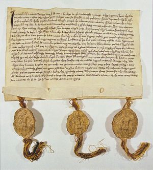 الدليل مثال على حق المطالبة بمعنى يؤكد على حق الأرض الخاصة. يرجع هذا الدليل إلى عام 1273.
