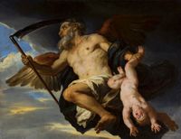 الزمن يقص أجنحة كيوپيد (1694)، بريشة پيير مينيار | |