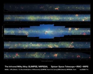 Broad infrared view of our Milky Way galaxy from the Spitzer Space Telescope created from more than 800,000 frames. This is the most detailed infrared picture of our galaxy to date.