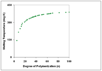Polymers with identical composition but different molecular weights may exhibit different physical properties. In general, increasing degree of polymerization correlates with higher melting temperature [4] and higher mechanical strength.
