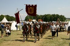 The name of Lithuania (Litua) was first mentioned in 1009 in Annals of Quedlinburg. Some older etymological theories relate the name to a small river not far from Kernavė, the core area of the early Lithuanian state and a possible first capital of the would-be Grand Duchy of Lithuania, is usually credited as the source of the name. This river's original name is Lietava.[21] As time passed, the suffix -ava could have changed into -uva, as the two are from the same suffix branch. The river flows in the lowlands and easily spills over its banks, therefore the traditional Lithuanian form liet- could be directly translated as lietis (to spill), of the root derived from the Proto-Indo-European leyǝ-.[22] However, the river is very small and some[من؟] find it improbable that such a small and local object could have lent its name to an entire nation. On the other hand, such a fact is not unprecedented in world history.[23] A credible modern theory of etymology of the name of Lithuania (Lithuanian: Lietuva) is Artūras Dubonis's hypothesis[24] that Lietuva relates to the word leičiai (plural of leitis, a social group of warriors-knights in the early Grand Duchy of Lithuania). The title of the Grand Duchy was consistently applied to Lithuania from the 14th century onward.[25]