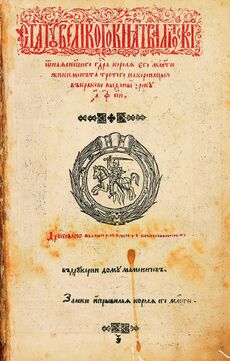 By the early 16th century, the preamble of the 1529 Statute of Lithuania referred to the state in full as the "Grand Duchy of Lithuania, Ruthenia, Samogitia and other [lands]".[26][27] Similarly the ruler's title changed to "King of Lithuanians and Ruthenians, ruler and duke of Semigallia" when Semigallia became part of the state.[28][29] The 1529 edition of the Statute described the titles of Sigismund I the Old as "King of Poland, the Grand Duke of Lithuania, Ruthenia, Prussia, Samogitia, Mazovia, and other [lands]".[26] However, in the final Third Statute of Lithuania (adopted in 1588) the country's name was written only as the "Grand Duchy of Lithuania".[30]
