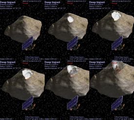 - في الثلاثاء 5 يوليو 2005 أعلنت وكالة الفضاء الأمريكية ناسا أن ارتطاما مبرمجا بين جسم صناعي و مذنب طبيعي قد تم بنجاح. تحطم المسبار عند اصطدامه بالمذنب بسرعة 37 ألف كم/ساعة ولكن كاميرا على متنه سجلت اقترابه من المذنب في الدقائق الأخيرة.[4]