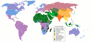 | Christianity | 2,000–2,200 | [33] | Abrahamic religions | Predominant in the Western world (Western Europe, the Americas, Oceania), Eastern Europe, Russia, Sub-Saharan Africa, the Philippines, and East Timor in Southeast Asia. Minorities worldwide, see Christianity by country. |