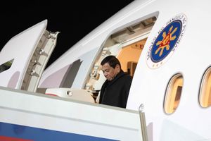 President Rodrigo Roa Duterte disembarks from the presidential plane upon his arrival at Vnukovo International Airport in Moscow for his official visit to the Russian Federation on May 23, 2017
