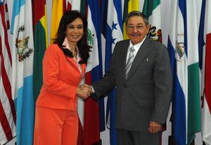 كرستينا فرنانديز ده كيرشنر برفقة راؤول كاسترو في كوبا أثناء زيارة رسمية في يناير 2009.