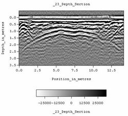 Ground penetrating radar survey is one method used in archaeological geophysics. GPR can be used to detect and map subsurface archaeological artifacts, features, and patterning.[14]