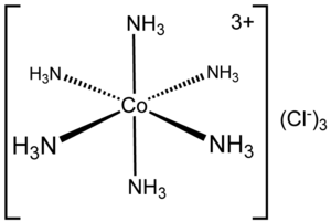 ست ربيطات من الأمونيوم تحيط بذرة الكوبالت في معقد كلوريد سداسي أمين الكوبالت الثلاثي