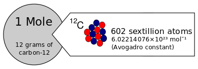 The Avogadro constant was historically derived from the old definition of the mole as the amount of substance in 12 grams of carbon-12 (12C). By this old definition, the numerical value of the Avogadro constant in mol−1 (the Avogadro number) was a physical constant that had to be determined experimentally.