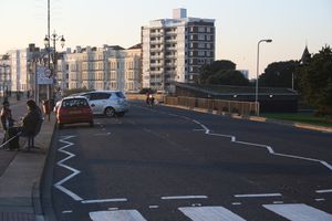 Angle parking along the Southsea seafront, England.