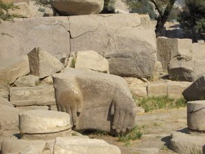 أجزاء من التماثيل الضخمة التي تهدمت في معبد الرامسيوم.