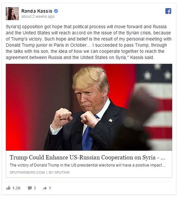 - ^ JAY SOLOMON (2016-11-23). "Donald Trump Jr. Held Talks on Syria With Russia Supporters". وال ستريت جرنال.