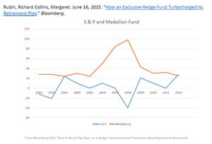 "[Renaissance] won the [Labor Department]'s permission to put pieces of Medallion inside Roth IRAs. That means no taxes – ever – on the future earnings of a fund that averaged a 71.8 percent annual return, before fees, from 1994 through mid-2014."