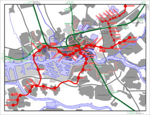 The four operating trainlines serve seven railway stations within the city boundaries (Rotterdam Centraal, Rotterdam Blaak, Rotterdam Alexander, Rotterdam Noord, Rotterdam Zuid, Rotterdam Lombardijen, Rotterdam Stadion (next to De Kuip, only open for events).