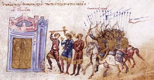 In the Christian martyrology, seven Christian martyrs were crucified in 297 in Samosata for refusing to perform a pagan rite in celebration of the victory of Maximian over the Sassanids: Abibus, Hipparchus, James, Lollian, Paragnus, Philotheus, and Romanus. Saint Daniel the Stylite was born in a village near Samosata; Saint Rabbulas, venerated on 19 February, who lived in the 6th century at Constantinople, was also a native of Samosata. A Notitia Episcopatuum of Antioch in the 6th century mentions Samosata as an autocephalous metropolis (Échos d'Orient, X, 144); at the synod that reinstated Patriarch Photius I of Constantinople (the Photian Council) of 879, the See of Samosata had already been united to that of Amida (Diyarbakır).[18] As in 586, the titular of Amida bears only this title ([19]), it must be concluded that the union took place between the 7th and the 9th centuries. Earlier bishops included Peperius, who attended the Council of Nicaea (325); Saint Eusebius of Samosata, a great opponent of the Arians, killed by an Arian woman (c. 380), honoured on 22 June; Andrew, a vigorous opponent of Cyril of Alexandria and of the Council of Ephesus.[20]